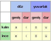 Ünlülerin nitelikleri aşağıdaki çizelgede toplu olarak gösterilmiştir: